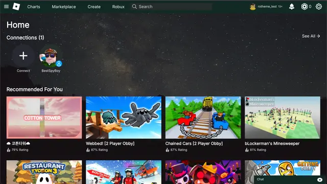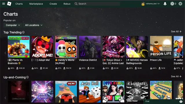 This calming theme, featuring a beautiful starry night photographed by Cam Adams, brings subdued tones of green to Roblox.